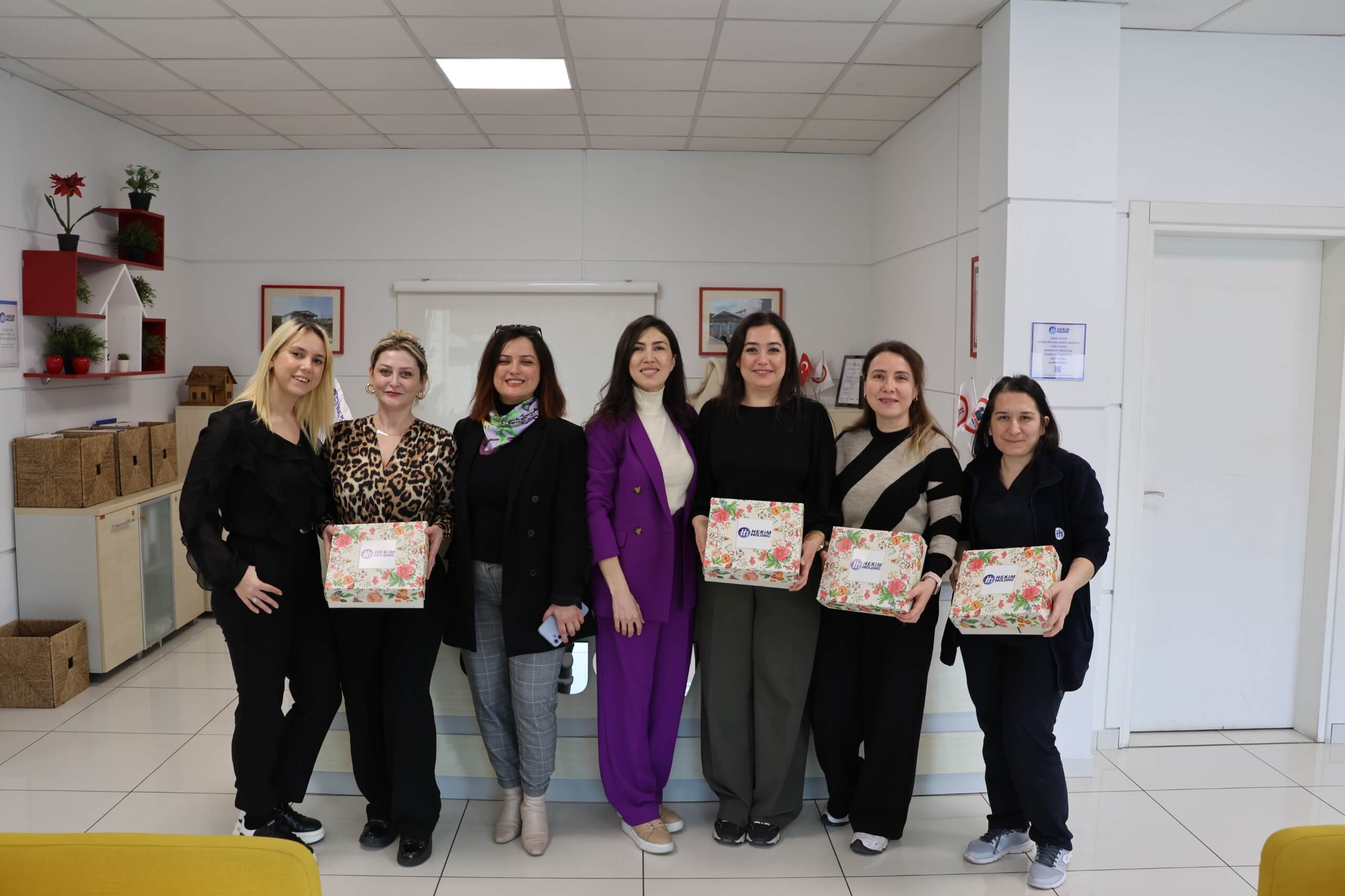 Hekim Holding ve topluluk şirketlerinde çalışan kadınlar için 8 Mart Dünya Emekçi Kadınlar Günü kapsamında anlamlı bir sürpriz hazırlandı. Pazar günü kutlanacak 8 Mart öncesinde, holding bünyesinde görev yapan kadın çalışanlara günün anlamını yansıtan küçük hediyelerden oluşan kutular takdim edildi.